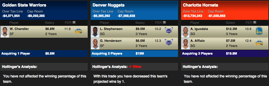 This is a three-team deal involving the Golden State Warriors, Denver Nuggets, and Charlotte Hornets.