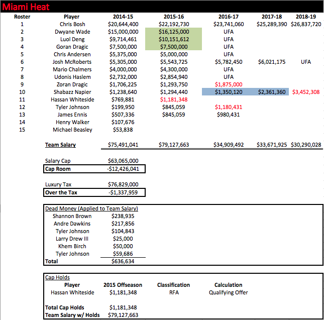 - Danny Granger (since traded) was signed via Bi-Annual exception. MIA cannot use exception again until 2016-17